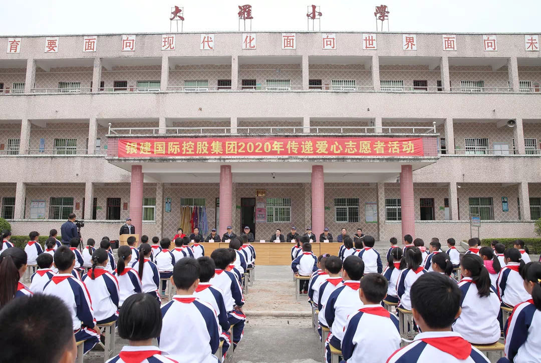 上午9時,在豐順縣鐘凌瑋副縣長、豐順縣教育局副局長陳秋遠、豐順縣農業農村局副局長劉文勇、省自然資源廳駐村工作隊及大羅村兩委的陪同下,銀建國際集團100多位員工在大羅小學舉行了捐贈儀式。